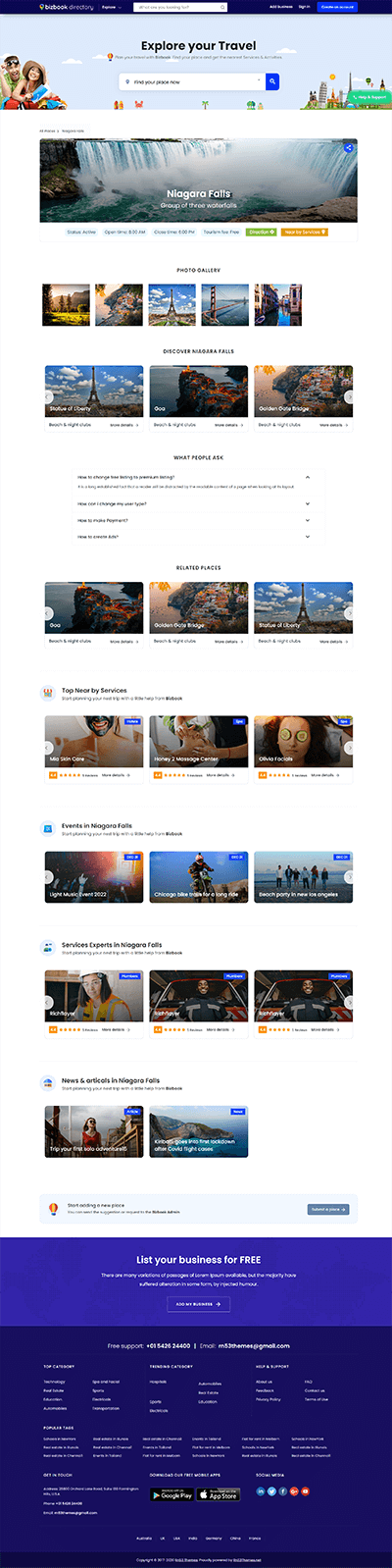 Boost your visitors with the Travel module, and let Bizbook connect them to nearby services—shops, professionals, blogs, and even local events!